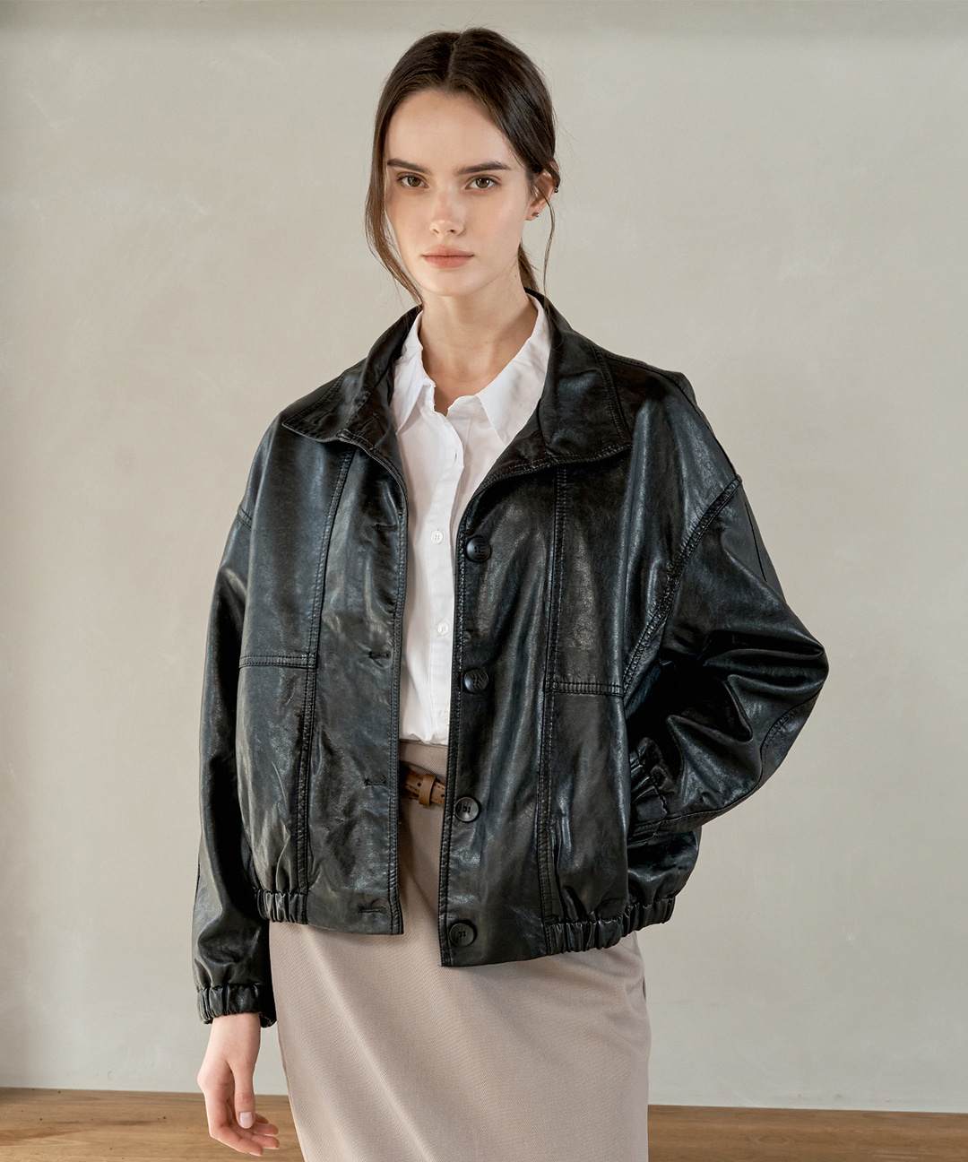 하이넥 레더 블루종 버튼 자켓 (TY1JK008L0)