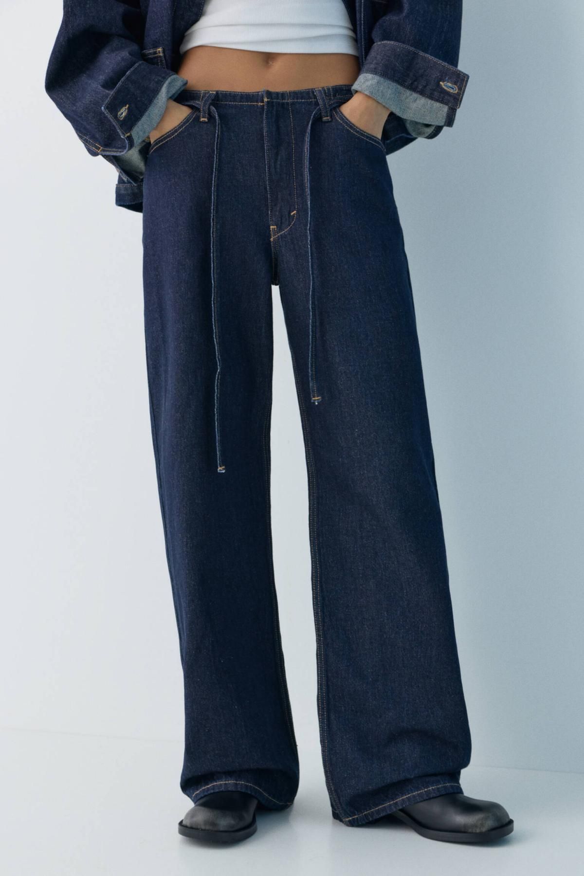 풀앤베어 드로스트링 배기핏 데님 팬츠 3660/326 NAVY