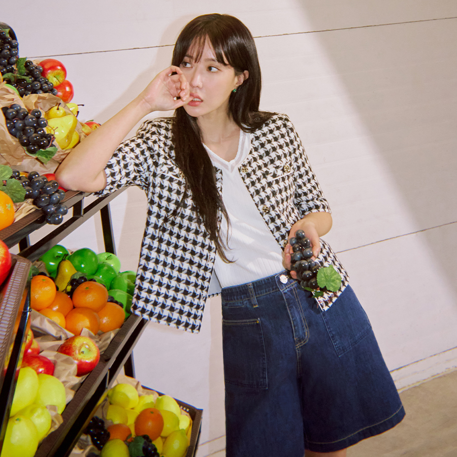 체크보드 트위드 반팔 자켓 (BKJAD2147)