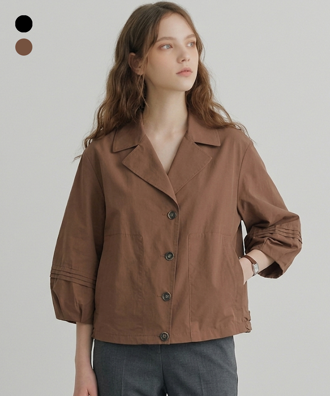 [Exclusive] 오픈칼라 퍼프 블라우스 (BKBAF7402)