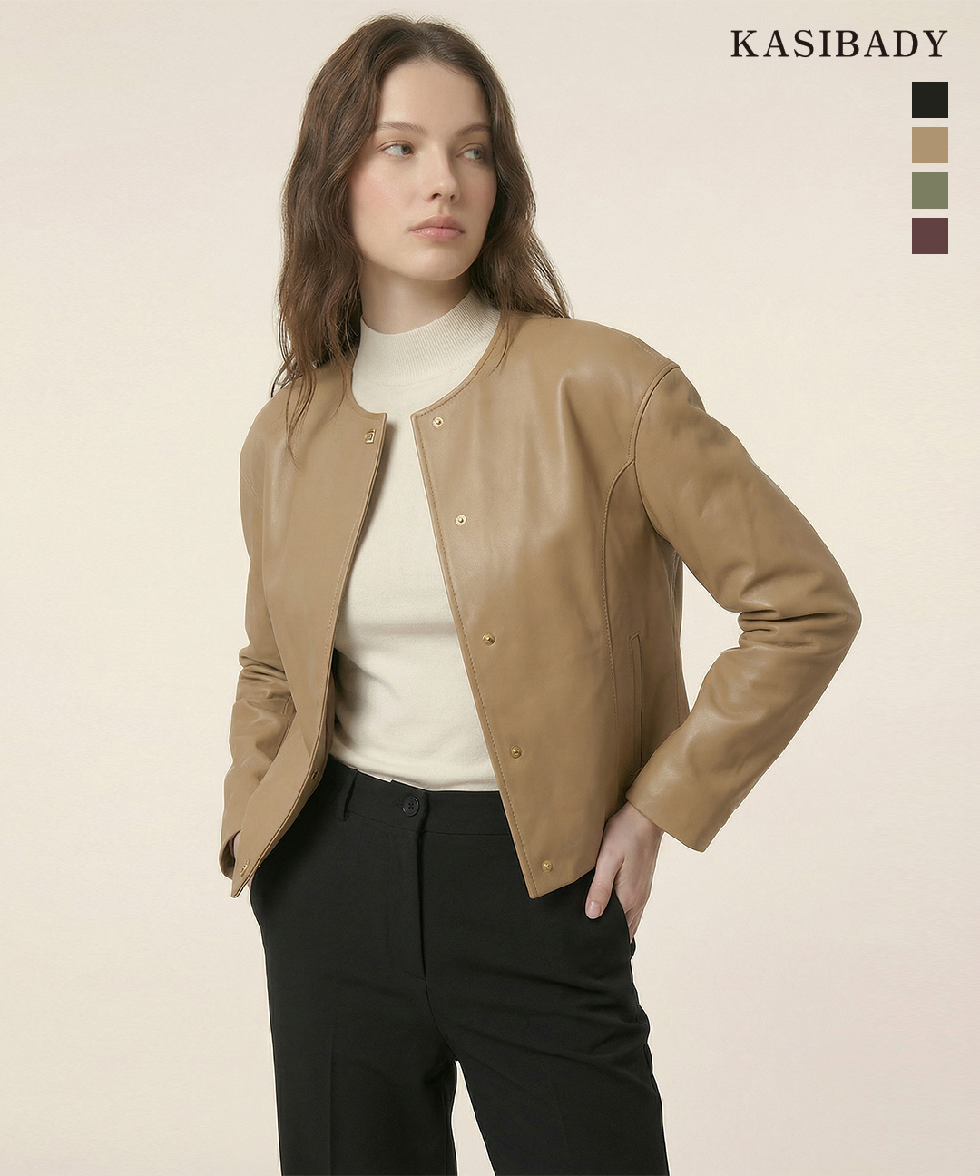 [카시바디] 미니멀 노카라 양가죽 자켓