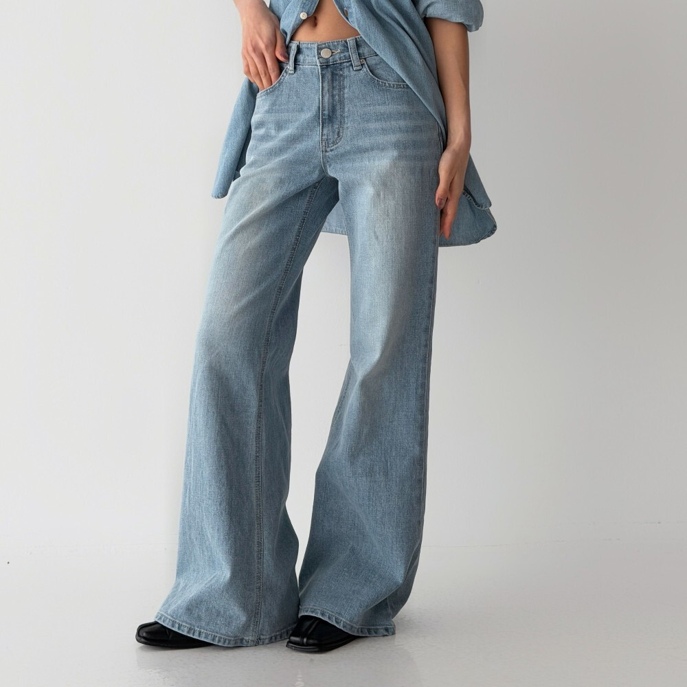 [옷자락] 여자 로우라이즈 세미와이드 연청 부츠컷 스판 청바지