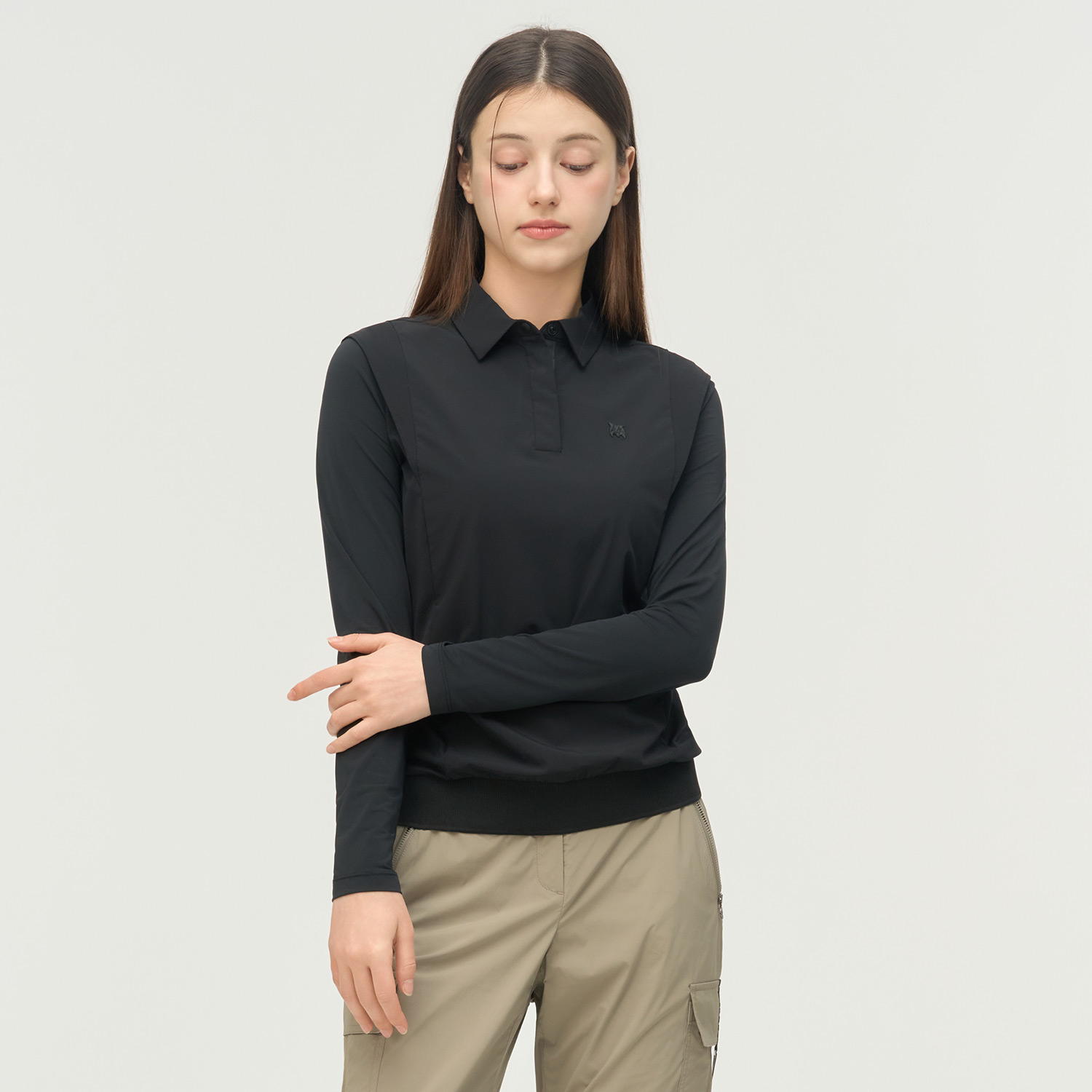 [26SS] 여성 우븐소재 소매냉감 카라 티셔츠 L21F1TO153_BK