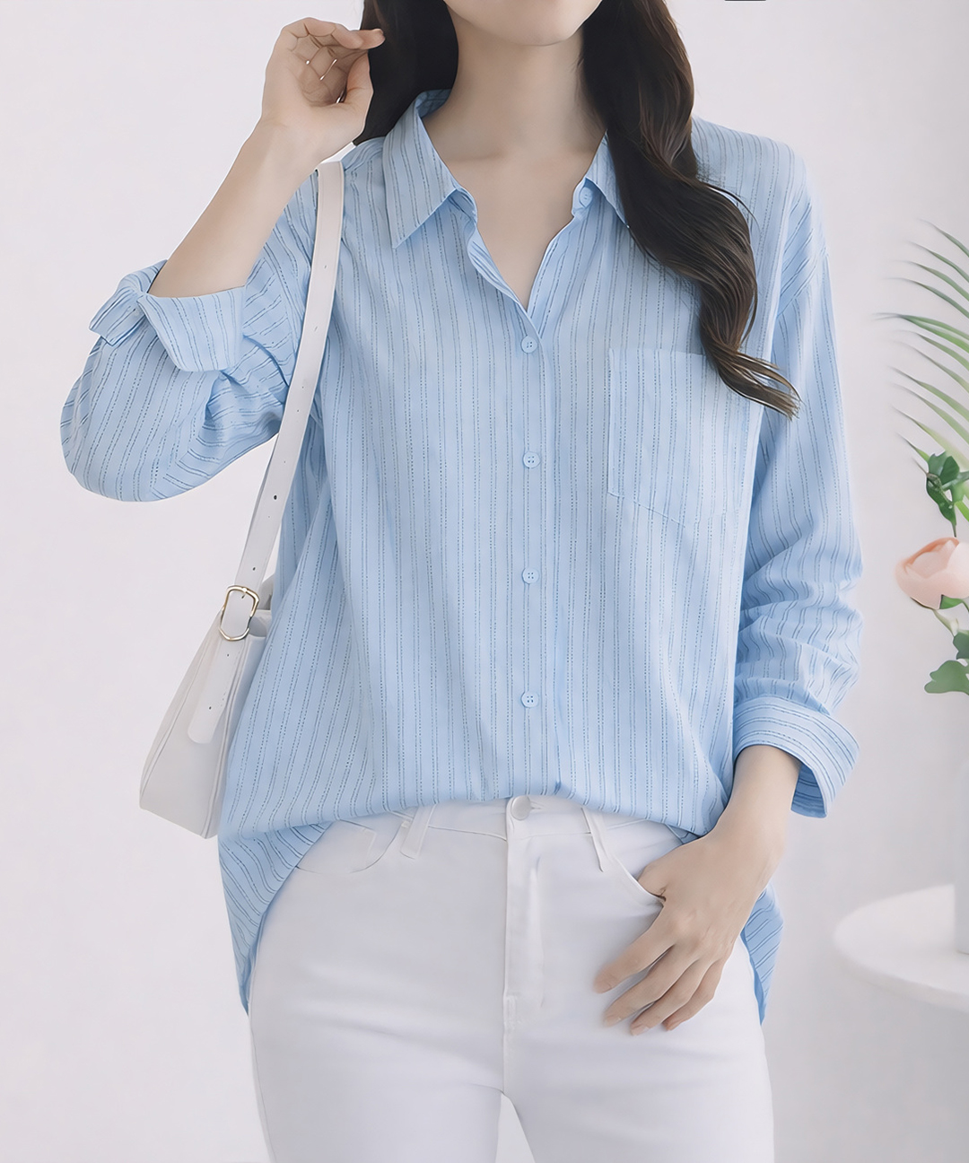 [모리스커밍홈] 스트라이프 루즈핏 코튼 린넨 셔츠_M2602BL025A