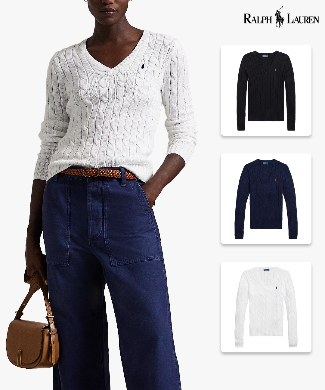 [폴로 랄프로렌] 여성 브이넥 케이블 니트 코튼 스웨터 (색상 3종 택1)