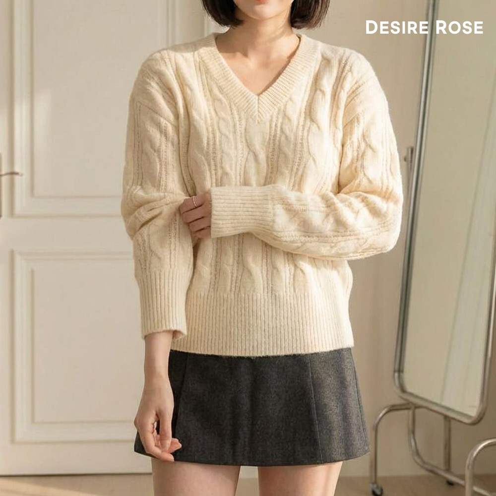 [디자이어로즈] 여성 v넥 꽈배기니트 3color 오버핏 겨울 스웨터