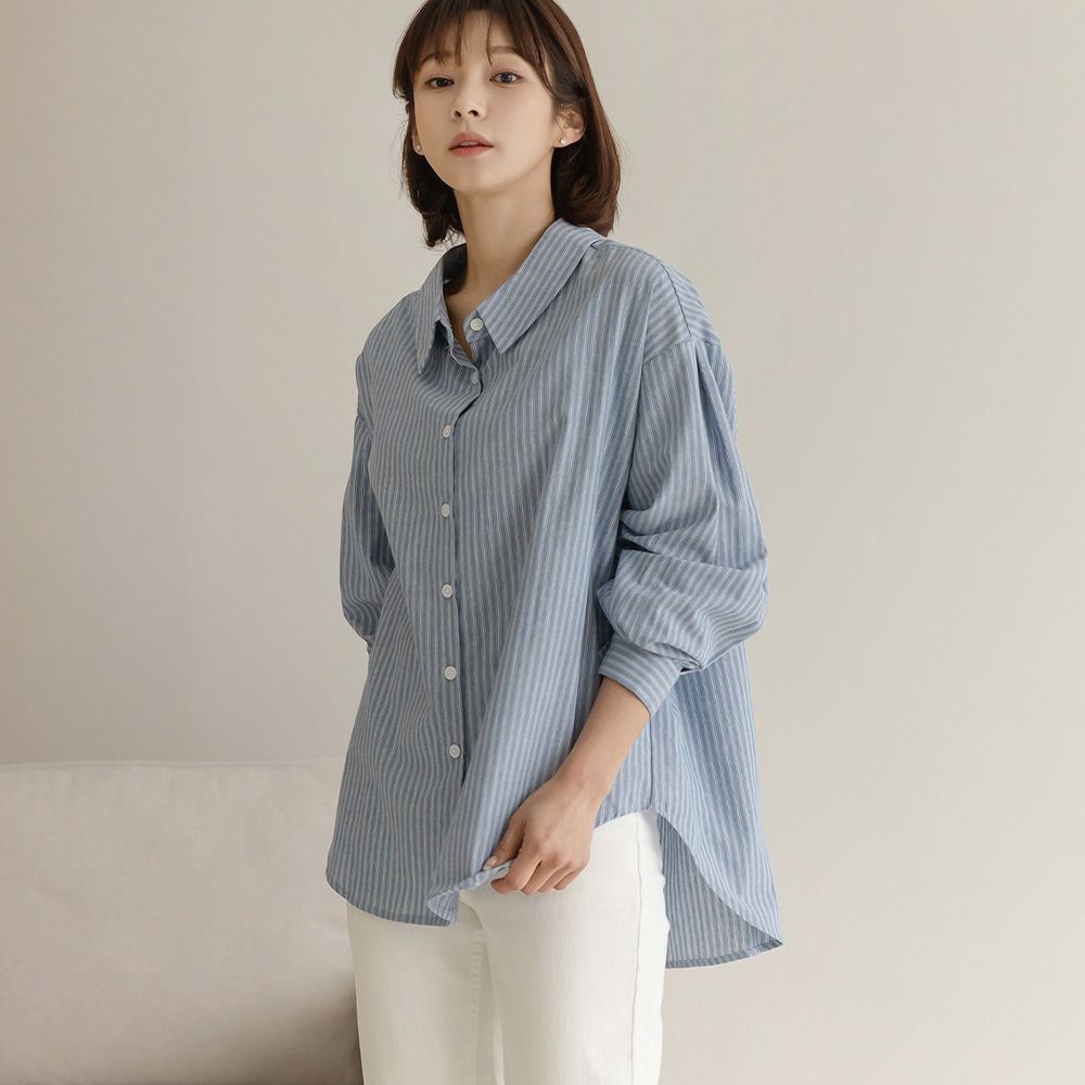 [66-120] 플렌 카라 핀턱 스트라이프 남방