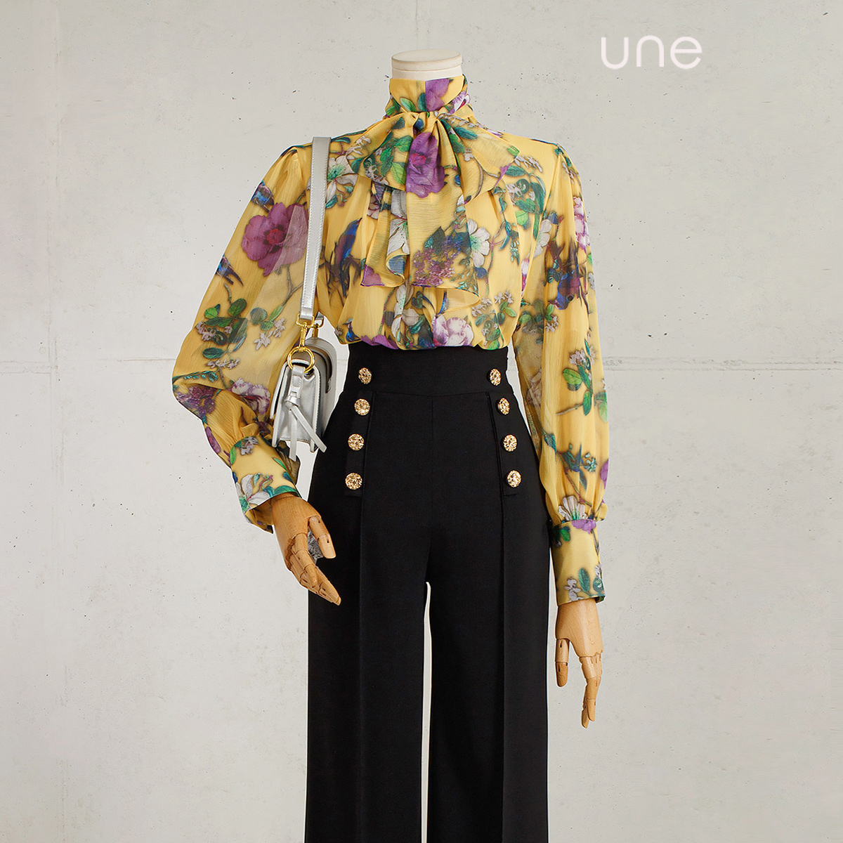 윈(une) 고저스프린팅 스카프넥블라우스