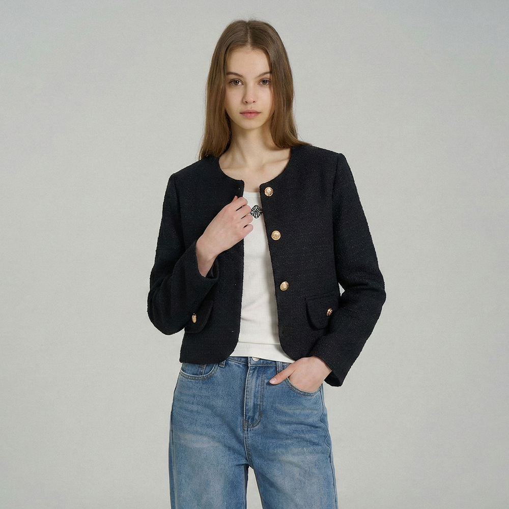 [ab.plus] 노카라 금장 버튼 트위드 자켓 (LSA5MJ32A)