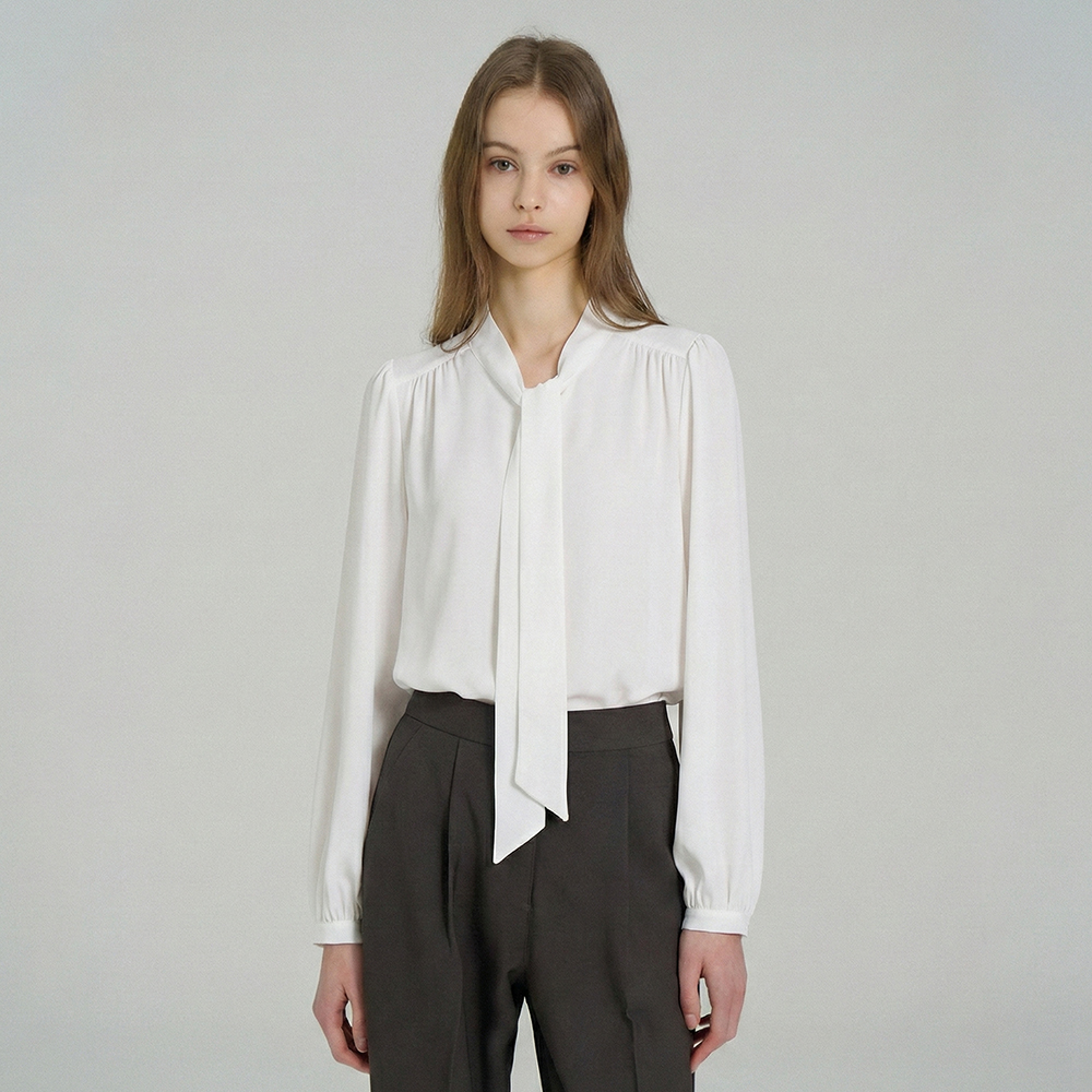[ab.plus] 모던 넥 타이드 디테일 블라우스 (LSA5MB35A)