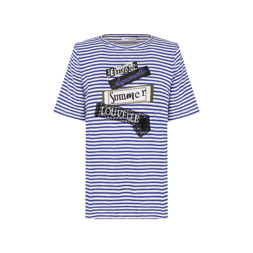 크로커다일레이디 스트라이프 원포인트 라운드 티셔츠_CLEMTS113