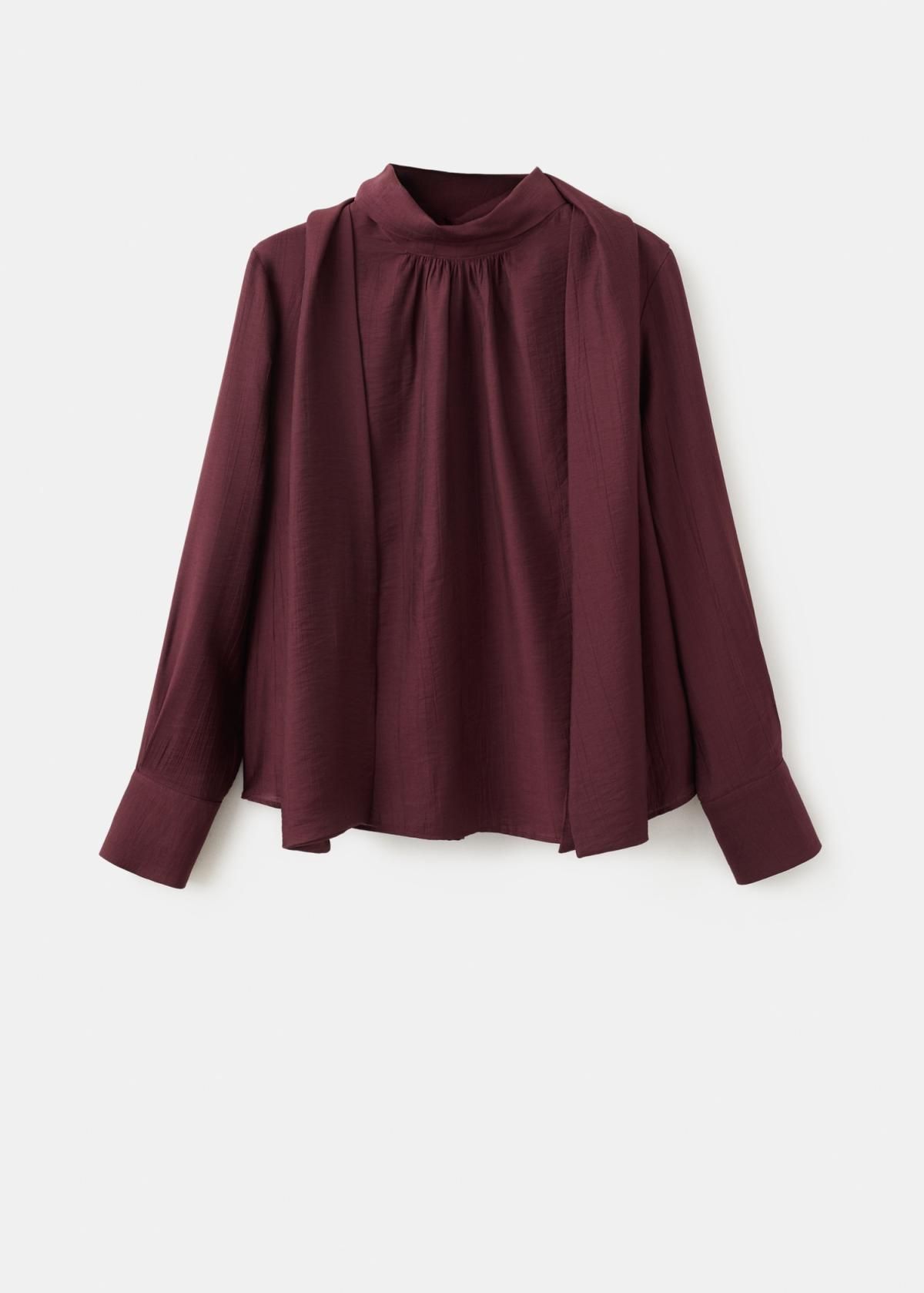 망고 버건디 하이넥 프릴 블라우스 27045831_76 GRANATE