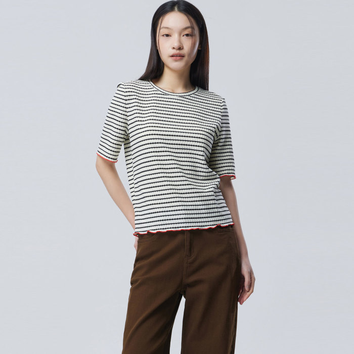 [베네통]스트라이프 조직감 티셔츠_BATS12611IV
