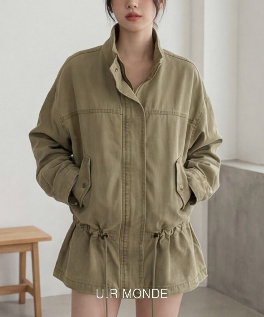 [유아몽드] 유아몽드 하이넥 워싱 야상 자켓 허리 스트링 등원룩