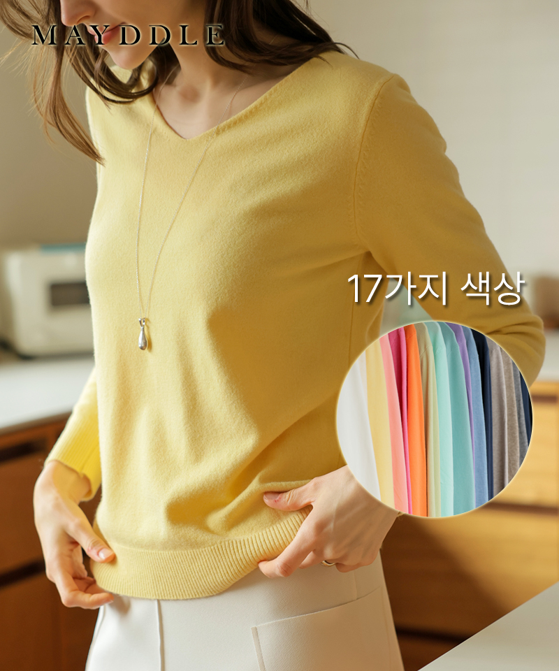 [영상핏][브이넥/라운드]2TYPE 부드러운애착 긴팔니트 / 기본니트 출근 직장인니트 니트티셔츠 니트티셔츠 이너 레이어드 소프트 파스텔 봄니트 슬림 여리핏 무지니트티 얇은니트티