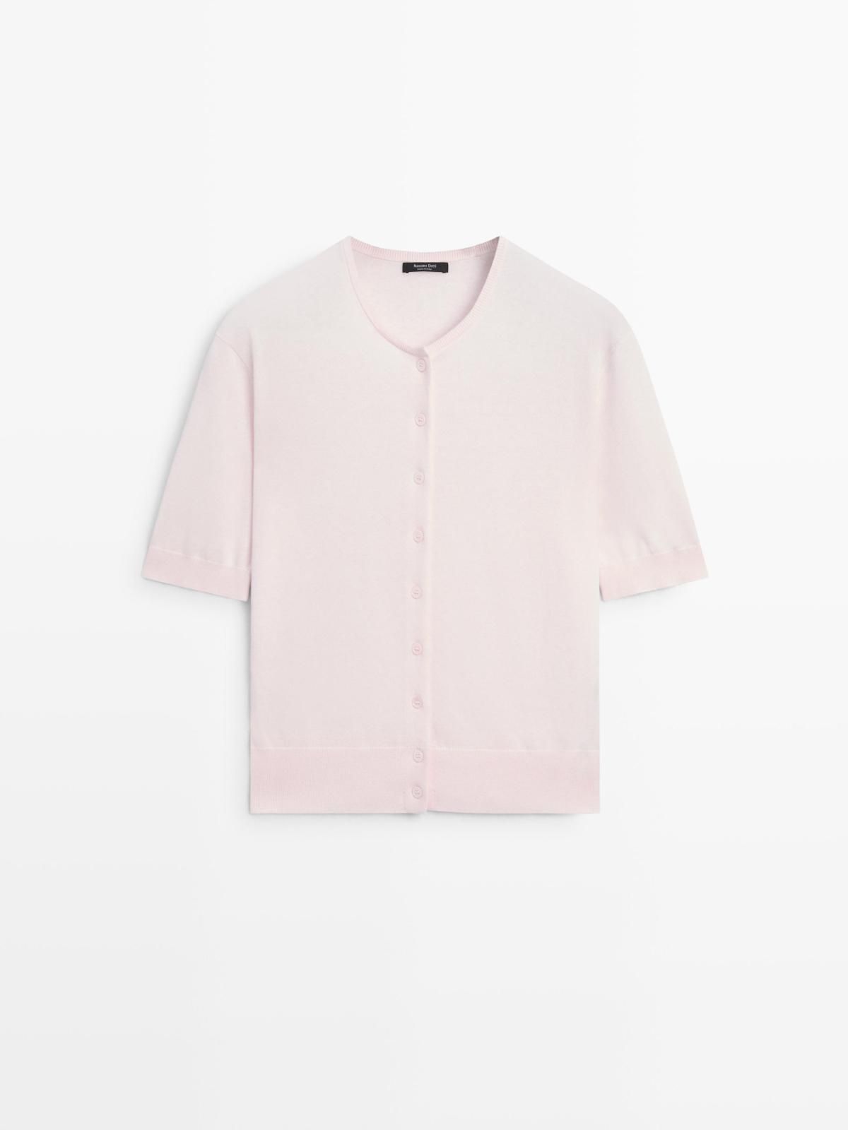 마시모두띠 크루넥 코튼 니트 반팔 가디건 5762/562 PALE PINK