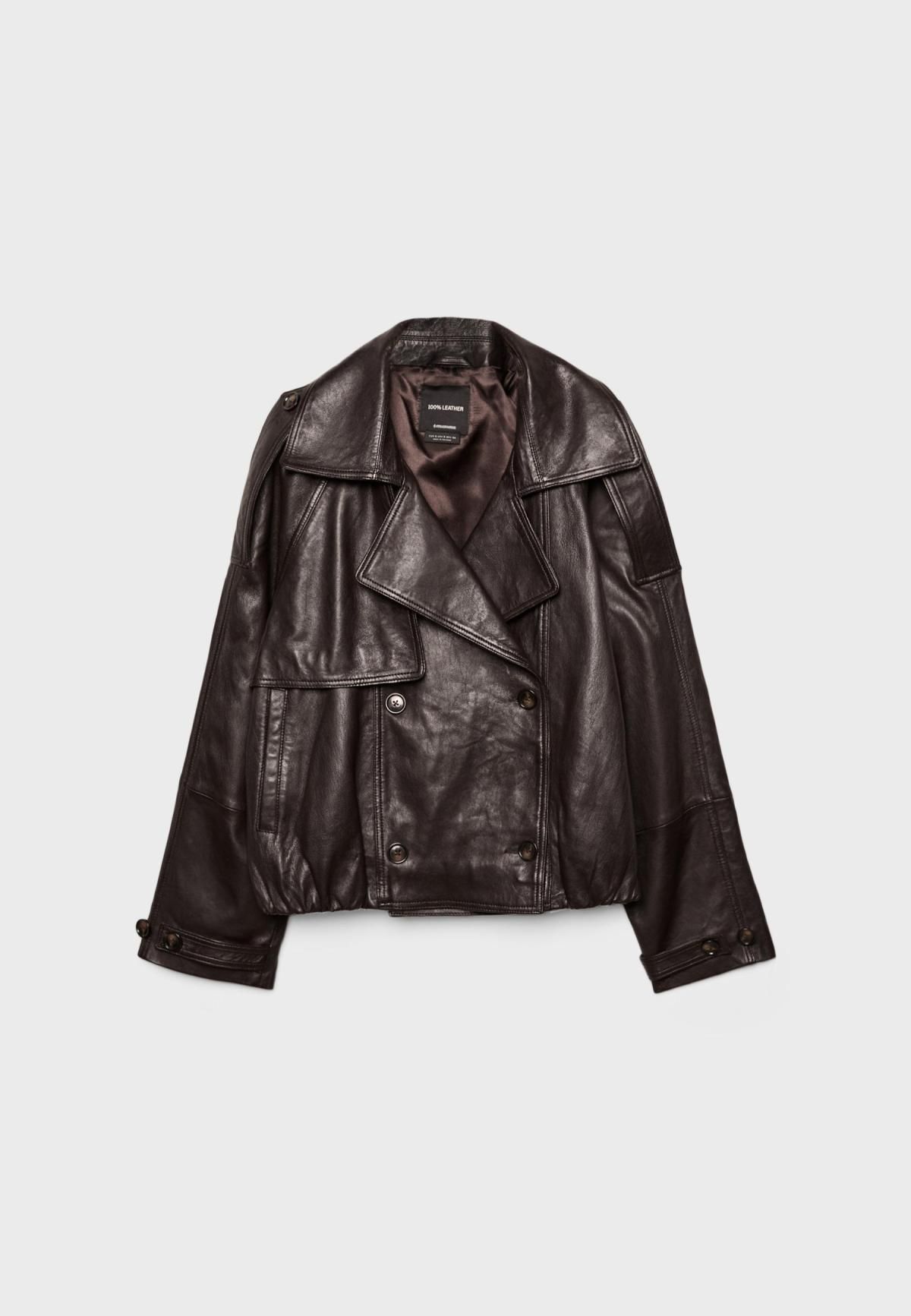 스트라디바리우스 오버사이즈 100레더 트렌치코트 7627/532/400 BROWN