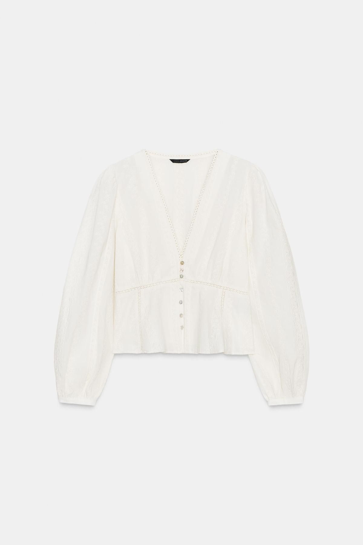자라 로맨틱 레이스 브이넥 자수 블라우스 8741/253/712 ECRU