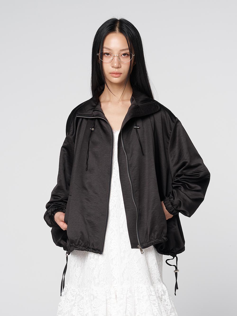 320쇼룸 글로시 셔링 스트링 점퍼 블랙