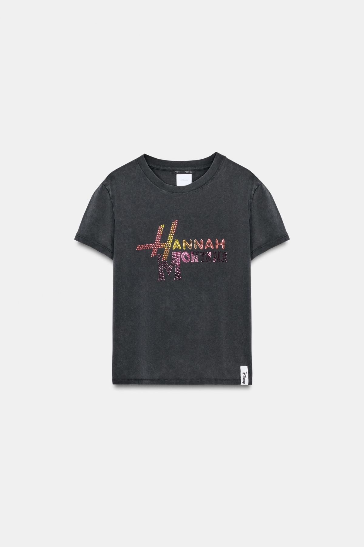 자라 워싱 코튼 디즈니 레터링 반팔 티셔츠 6050/058/822 CHARCOAL