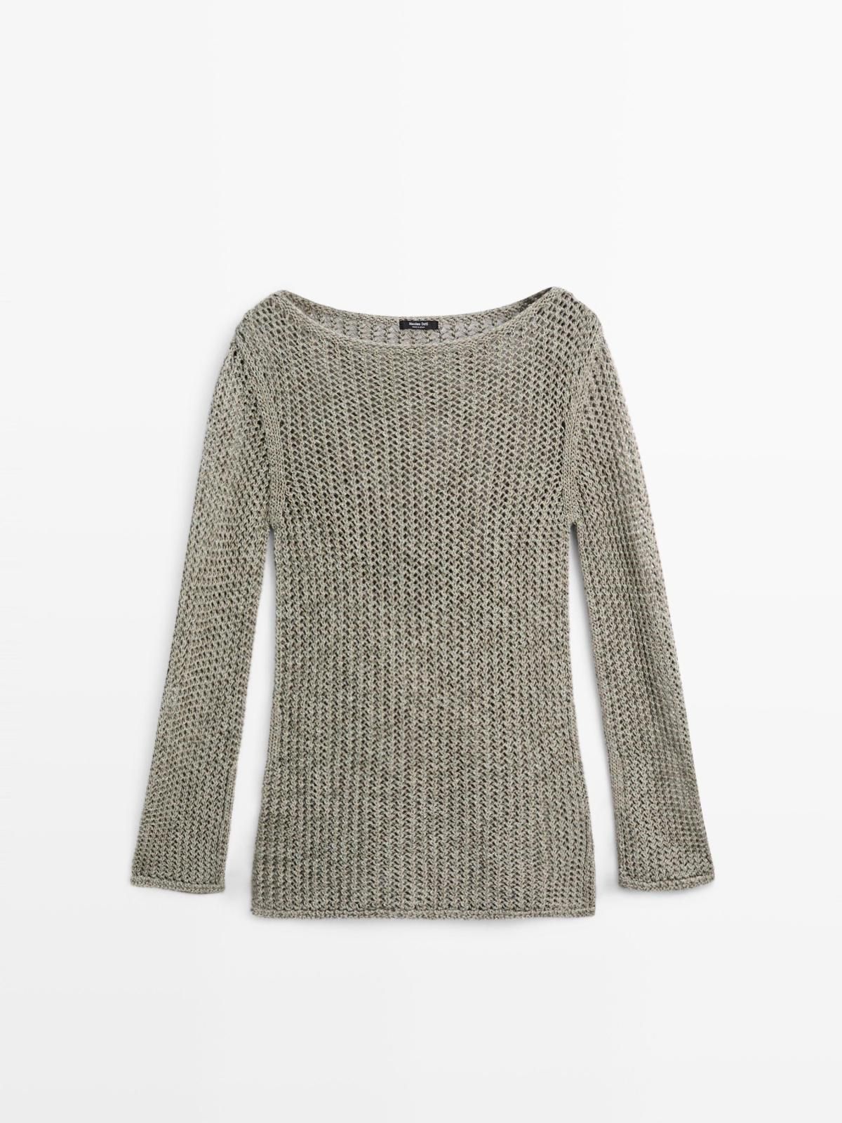 마시모두띠 코튼 혼방 컷워크 니트 보트넥 스웨터 5679/564 GREYISH GREEN