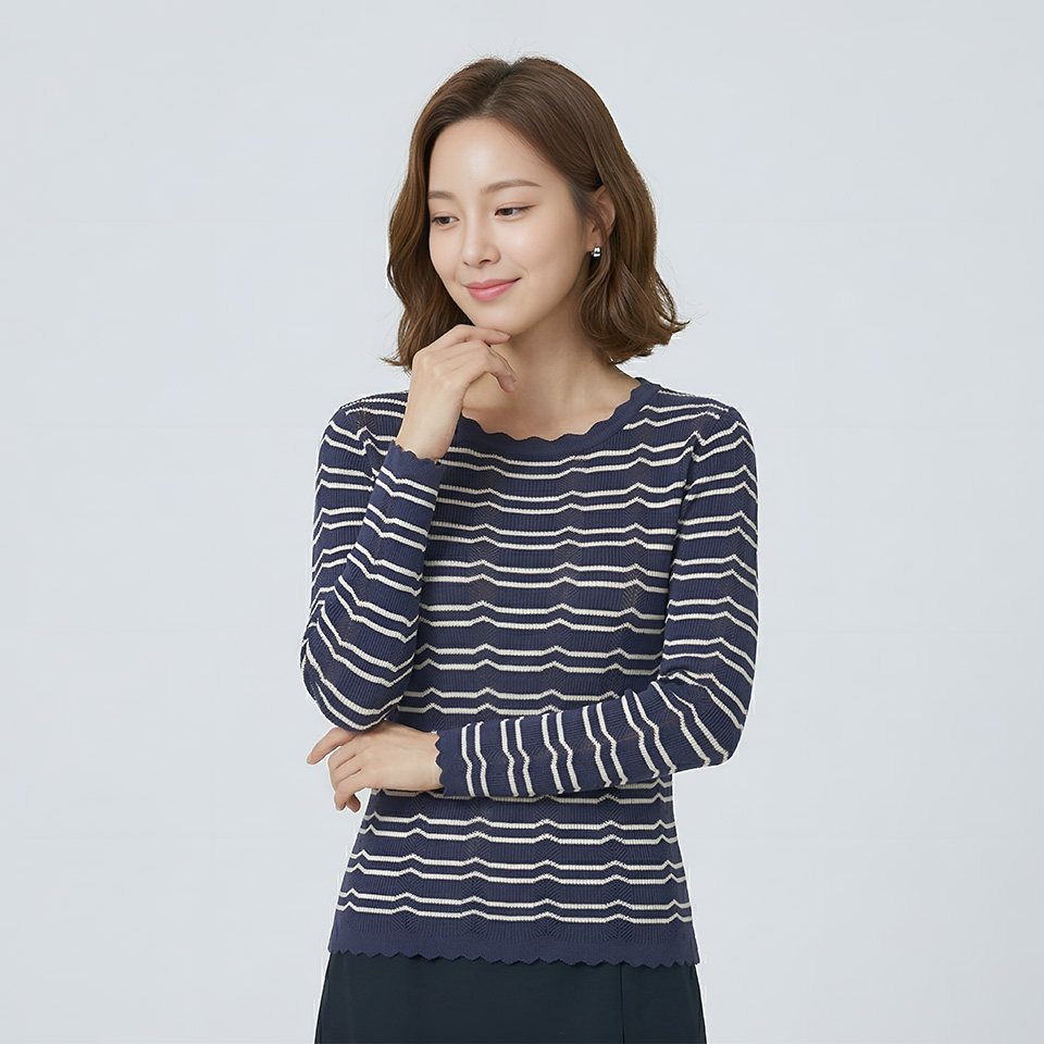 [조이너스]스칼럽 스트라이프 니트-JS23TB3102345B