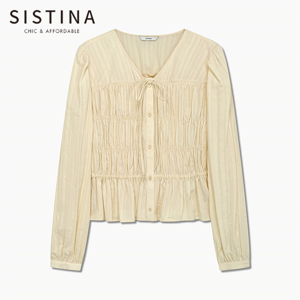 코튼 스모킹 리본 블라우스_AWWBLQ11010_LB