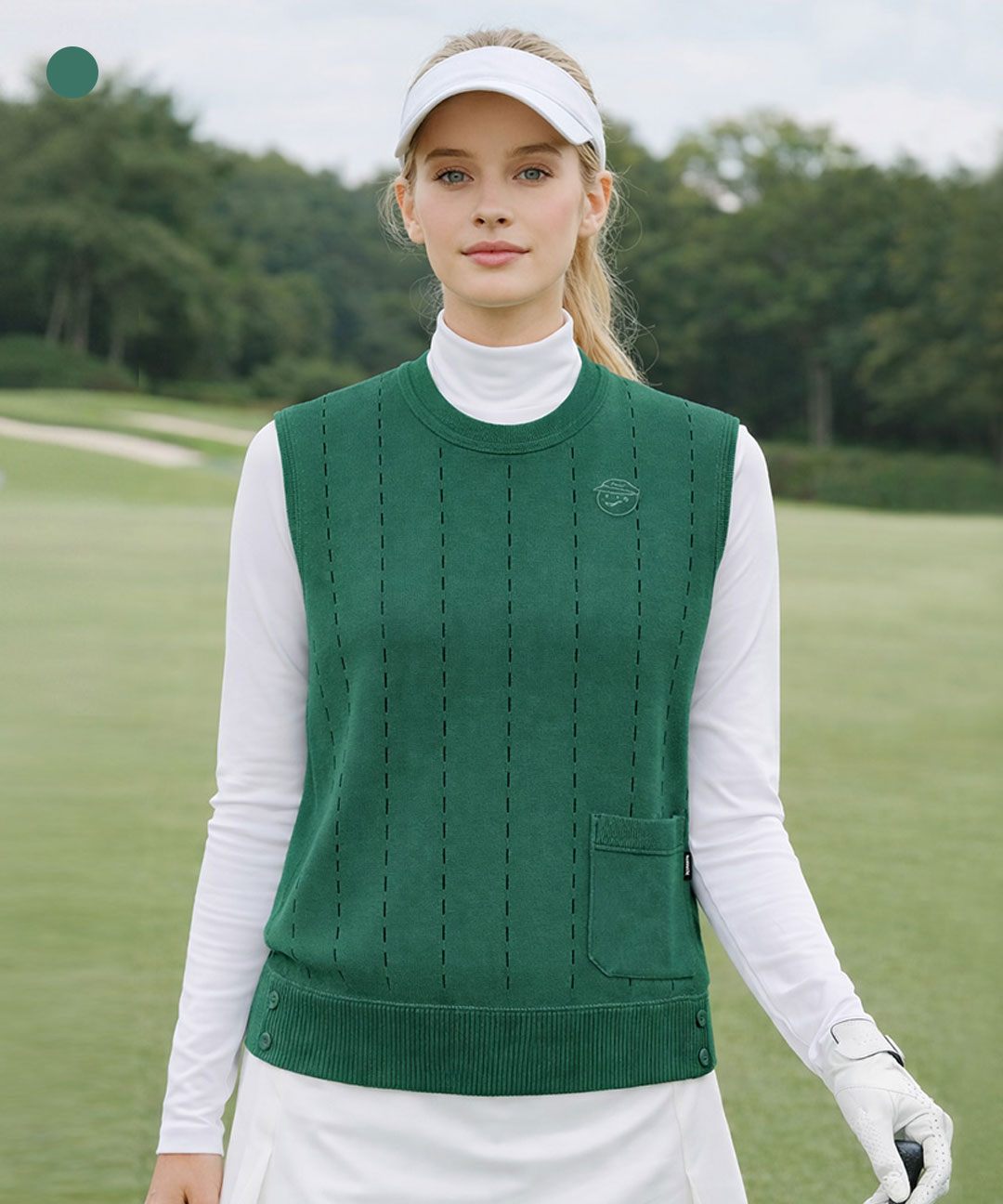[DENNIS] 26SS신상 여성 시그니처 펀칭 포인트 니트 베스트 그린_HD5SLSV151