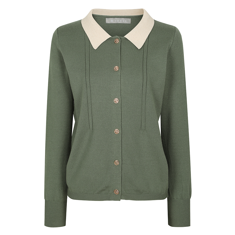 [예쎄] 배색 카라넥 금장 버튼 니트 가디건(S6SCD007A)