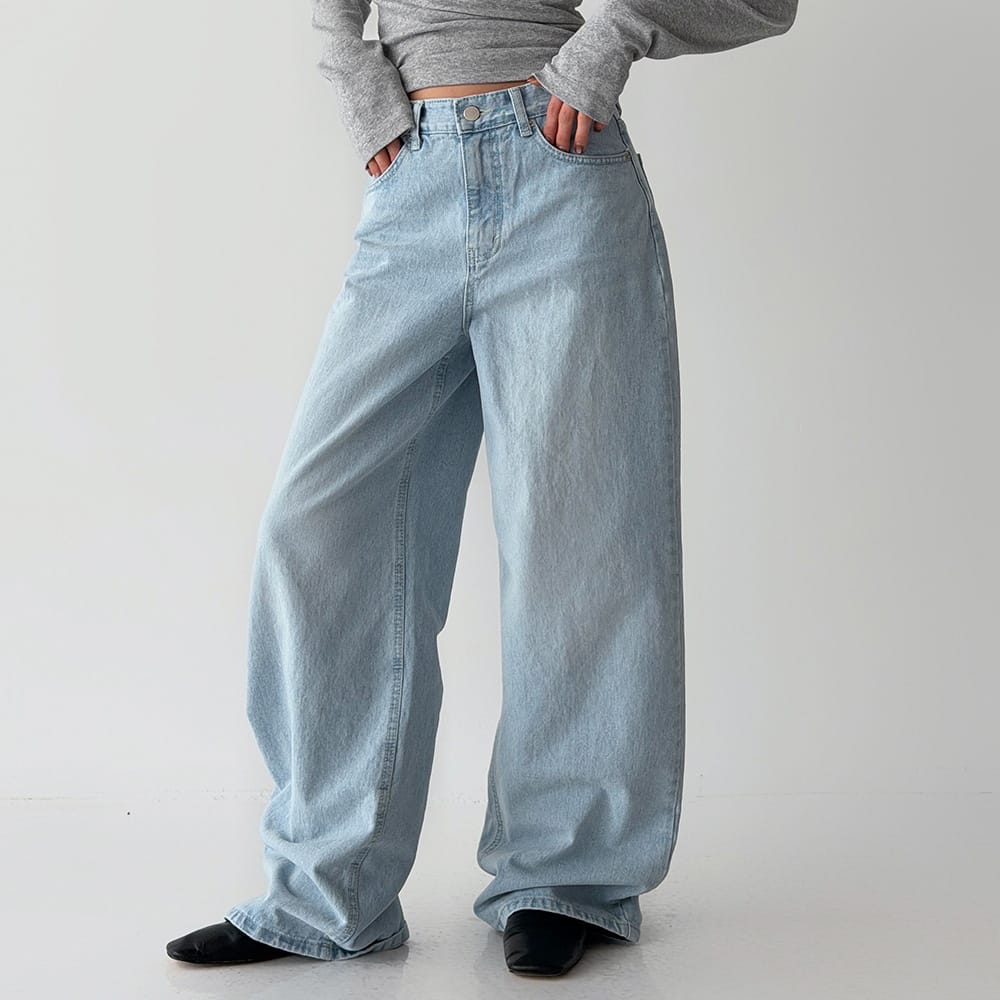 [옷자락] 여자 봄팬츠 연청 루즈 와이드핏 로우라이즈 청바지