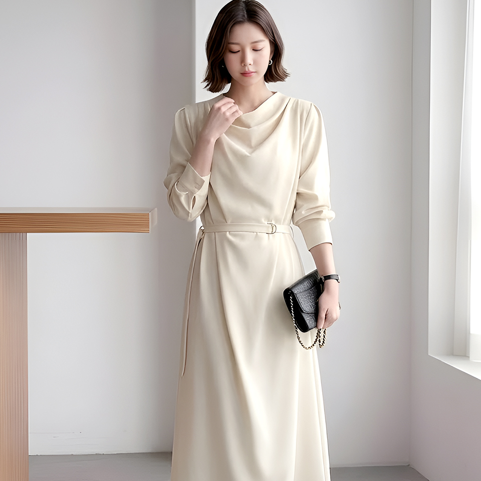 [예쎄] 스트랩 드레이프넥 핀턱 롱 원피스(S6SOP011A)