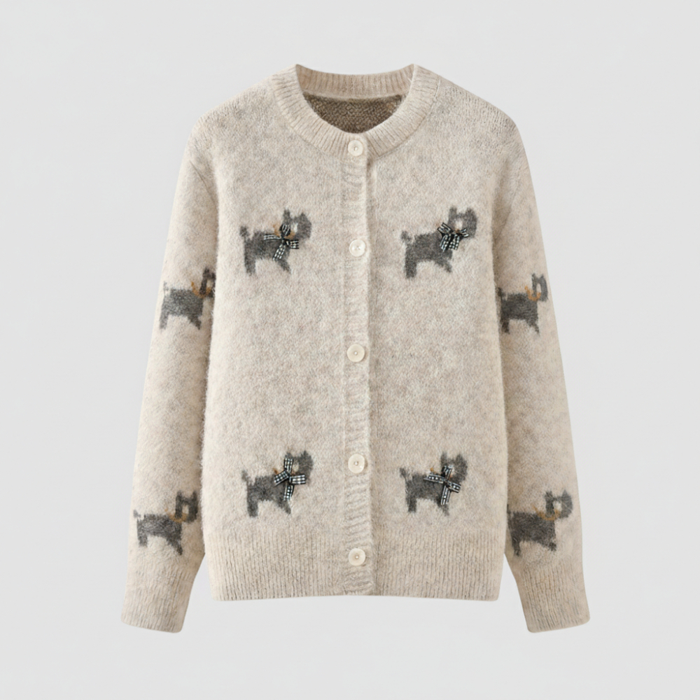 퍼피 체크 리본 니트 가디건 C26ACD109