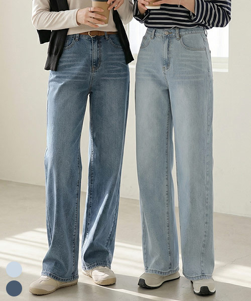 [딱맞진No.55] 사선절개 스판 와이드 데님 팬츠_265153