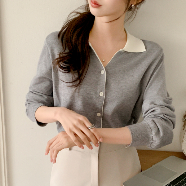 [프롬리리컬] (셔츠무드/부드러운착용감) 아르니 배색 카라 니트 가디건 cd3618