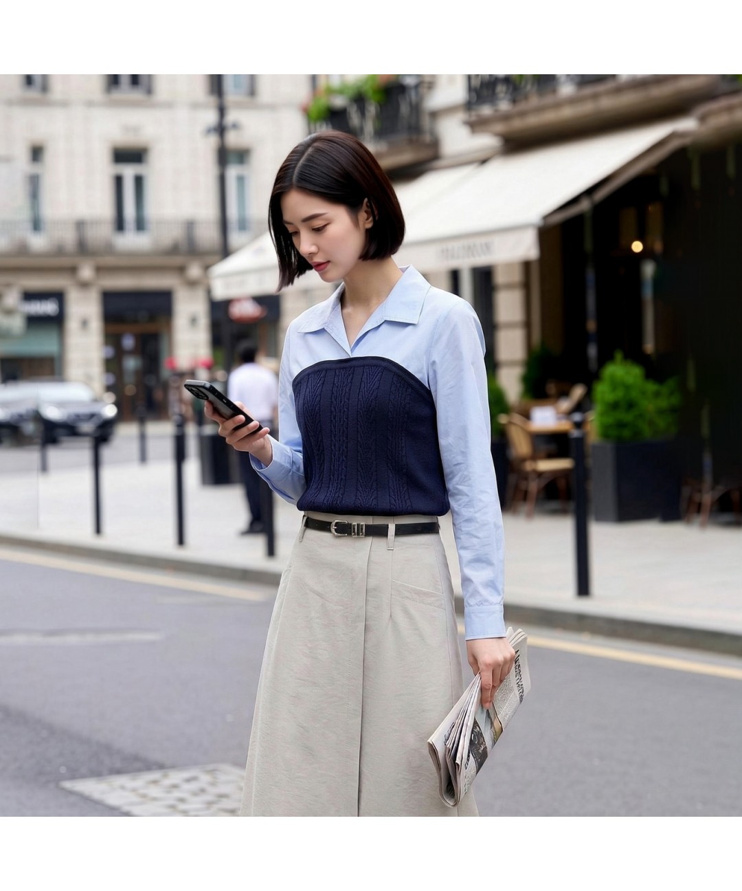 [봄신상] (더틸버리) 오픈칼라 니트 배색 블라우스 TS3M0BL011