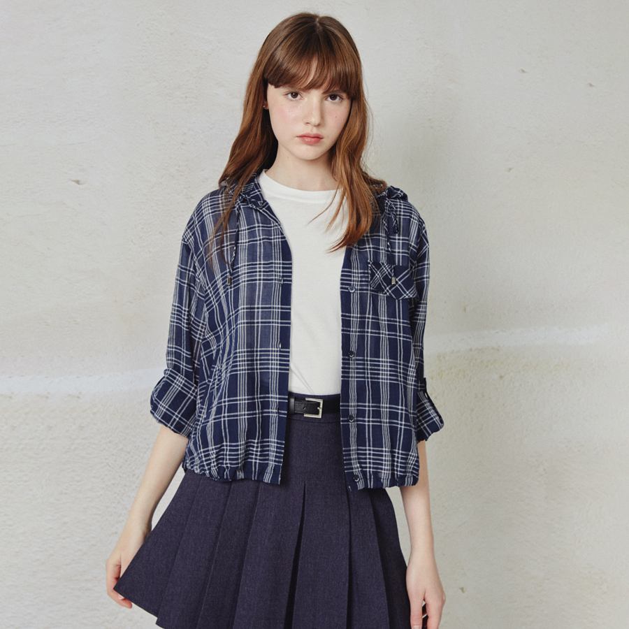 [봄신상] (더틸버리) 체크 후드넥 셔츠 블라우스 TS3M0BL031