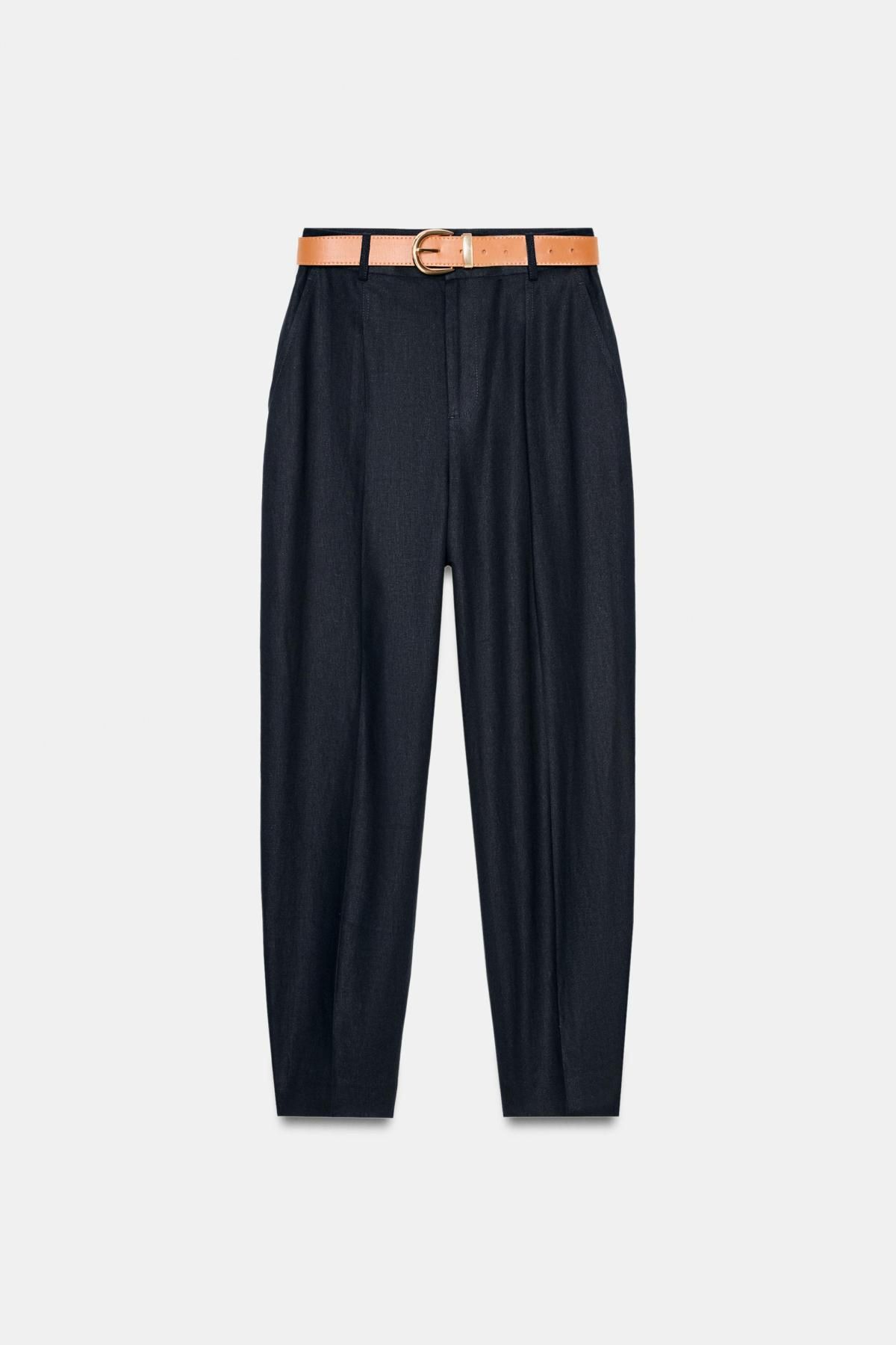 자라 린넨 블렌드 크롭 벨트 팬츠 2753/228/401 NAVY BLUE