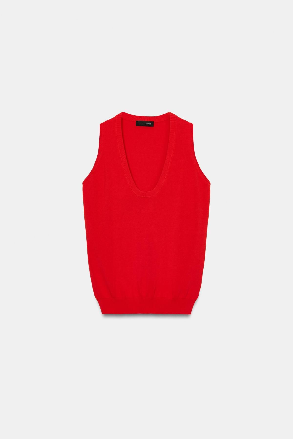 자라 레드 브이넥 니트 민소매 베스트 5755/020/600 RED