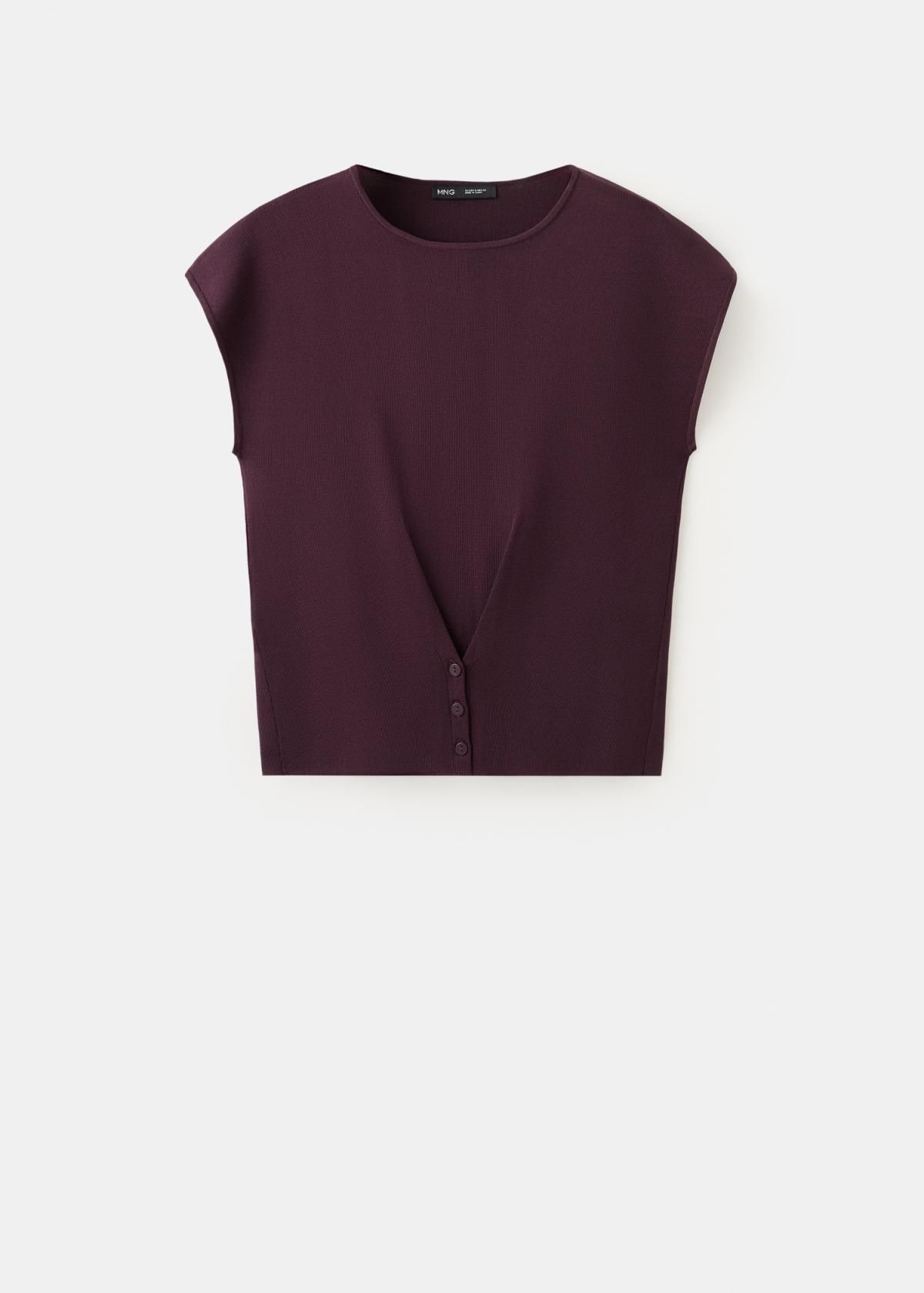 망고 슬림핏 버튼 라운드넥 니트 반팔 탑 27035820_78 BURDEOS
