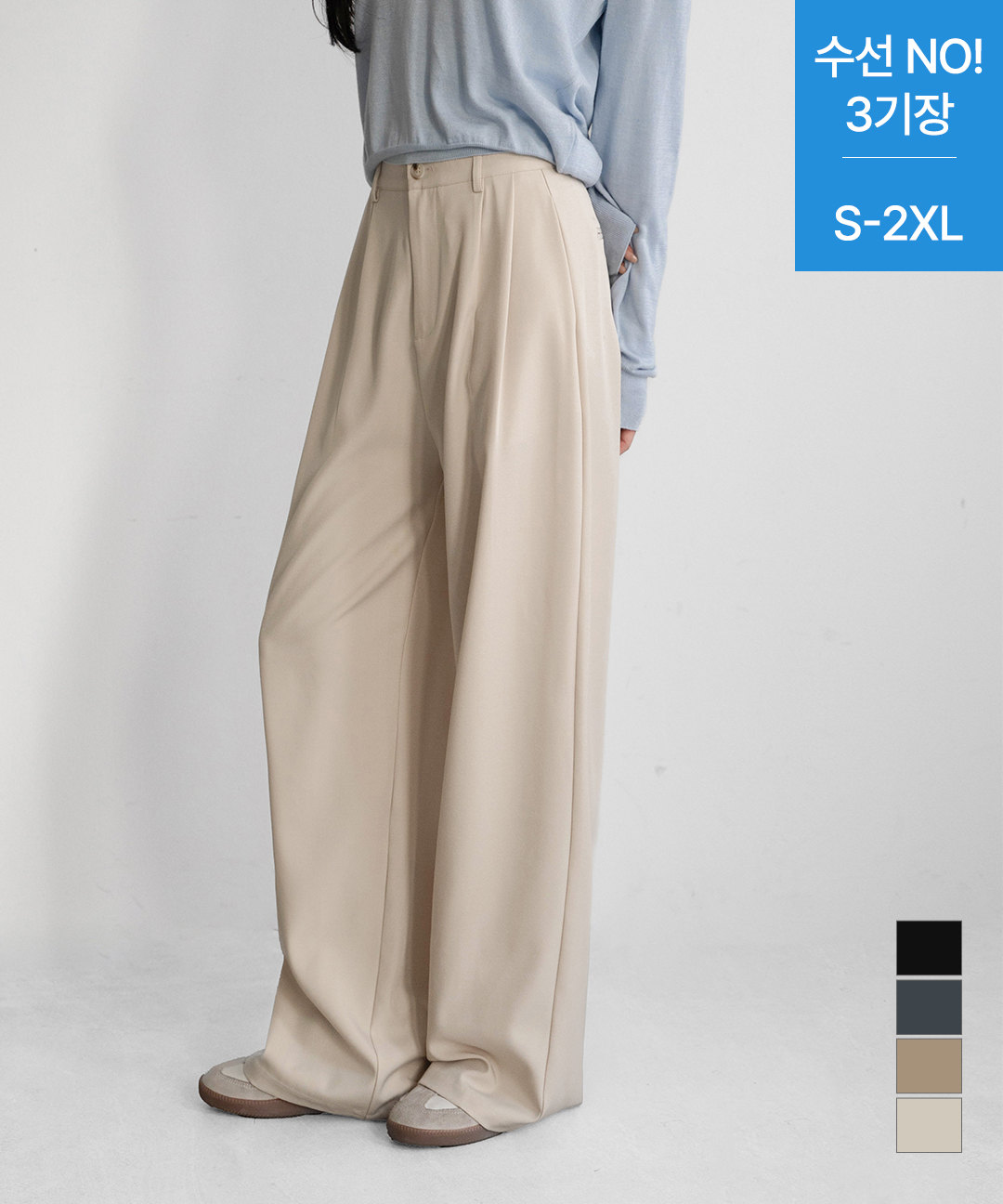 [진에비뉴] 원핀턱 뒷밴딩 와이드 슬랙스