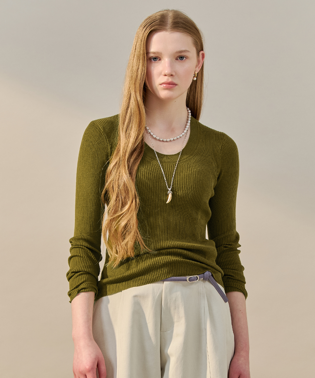 [마쟈] 베이직 슬림 U넥 골지 니트