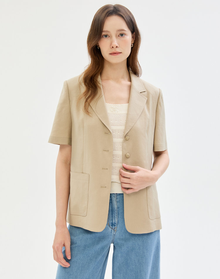 [질스튜어트 뉴욕] 여성 베이지 포켓 린넨혼방 자켓_WJJA5B520I3