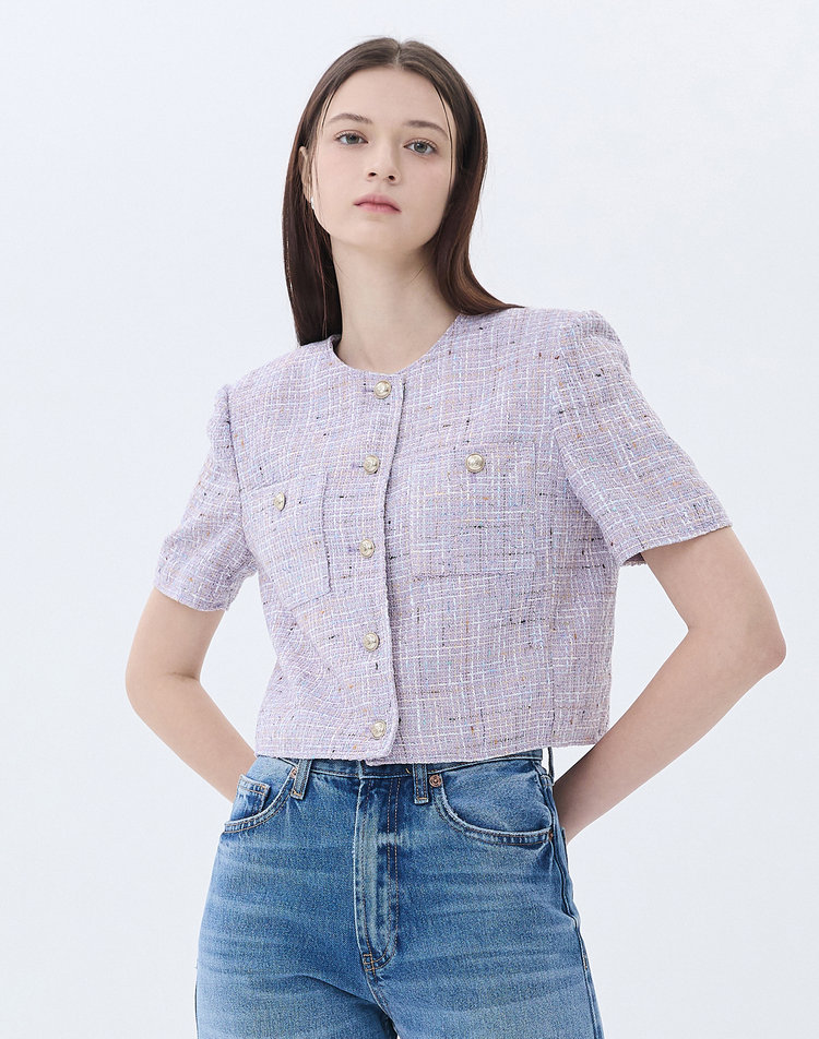 [질스튜어트 뉴욕] 여성 퍼플 포켓 폴리혼방 트위드자켓_WJJA5B720U1