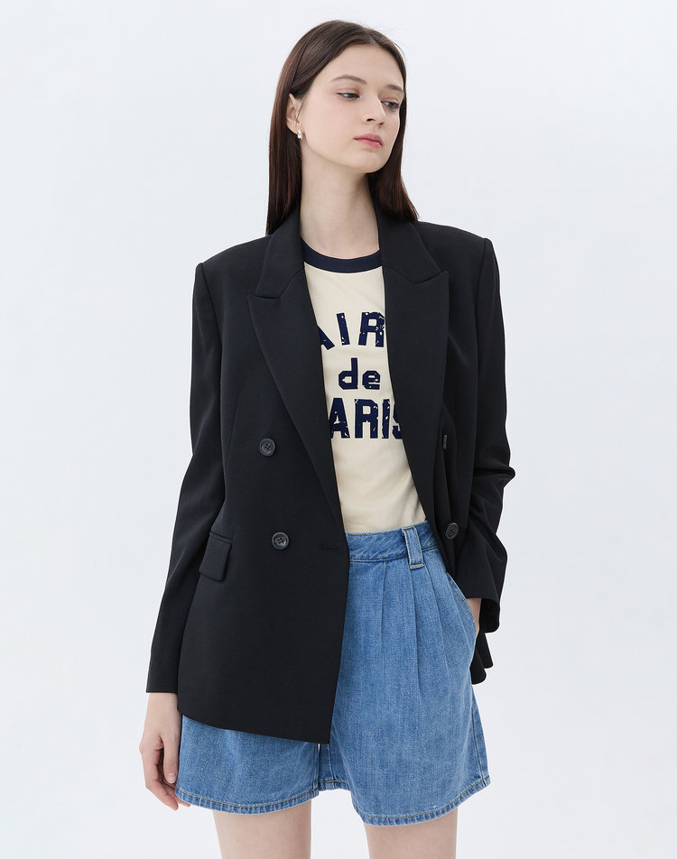 [아떼 바네사브루노] 여성 블랙 단색 울혼방 자켓_WVJA5B701BK