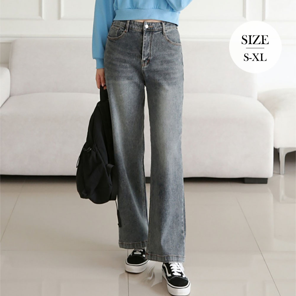 도파 뒷밴딩 워싱 와이드 스판 데님 팬츠_S4569