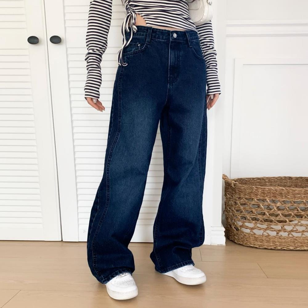 [옷자락] 여자 데일리룩 트렌디 편안한 와이드 데님 팬츠