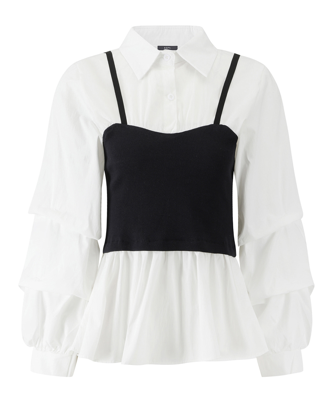 소프트 레이어드 뷔스티에 셔링 블라우스 (GQABA013D)