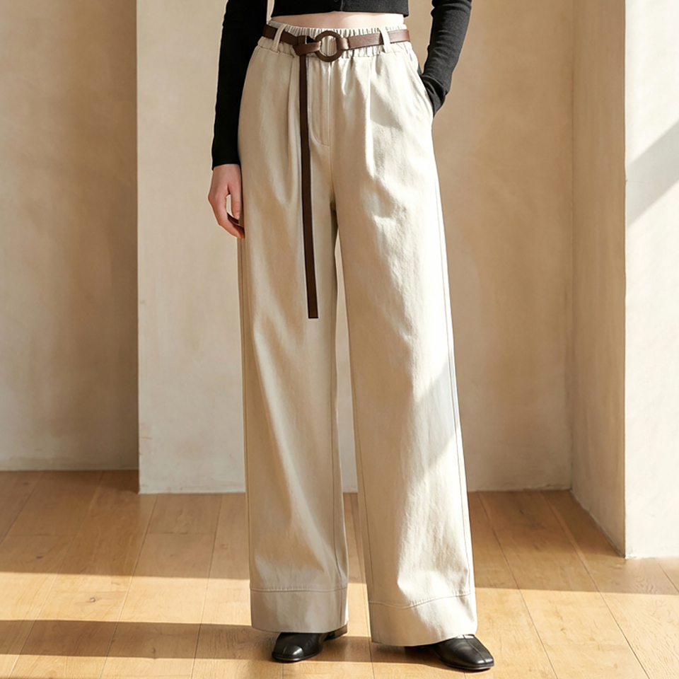 여성 에스닉 벨트 와이드 밴딩 팬츠