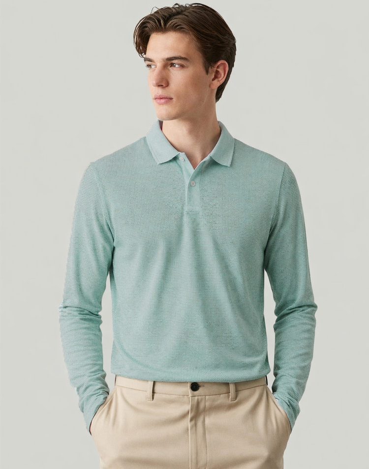 [26SS 닥스 남성]라이트그린 마이크로 패턴 카라 티셔츠_DMTS6A012E1
