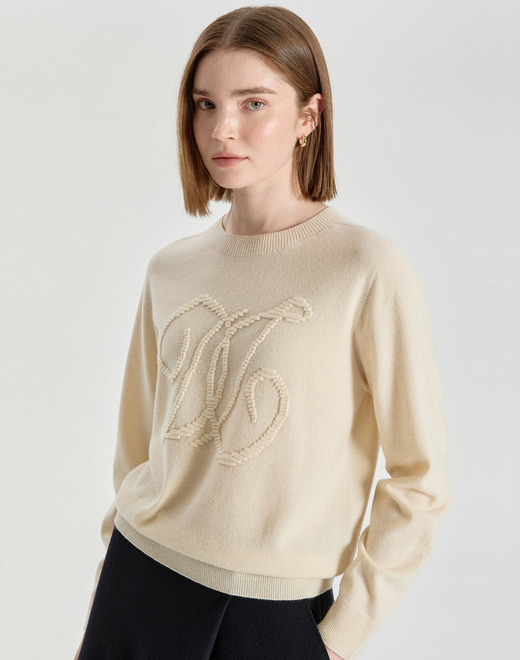 [26SS 닥스 여성]크림 홀가먼트 로고 울100 니트_DLSW6A113CR